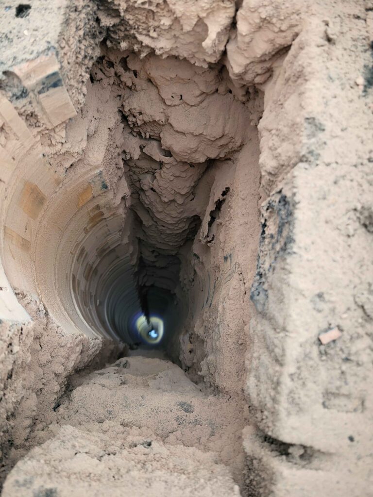 Metoda poszerzenia średnicy wewnętrznej komina z użyciem wiertnicy łańcuchowej.